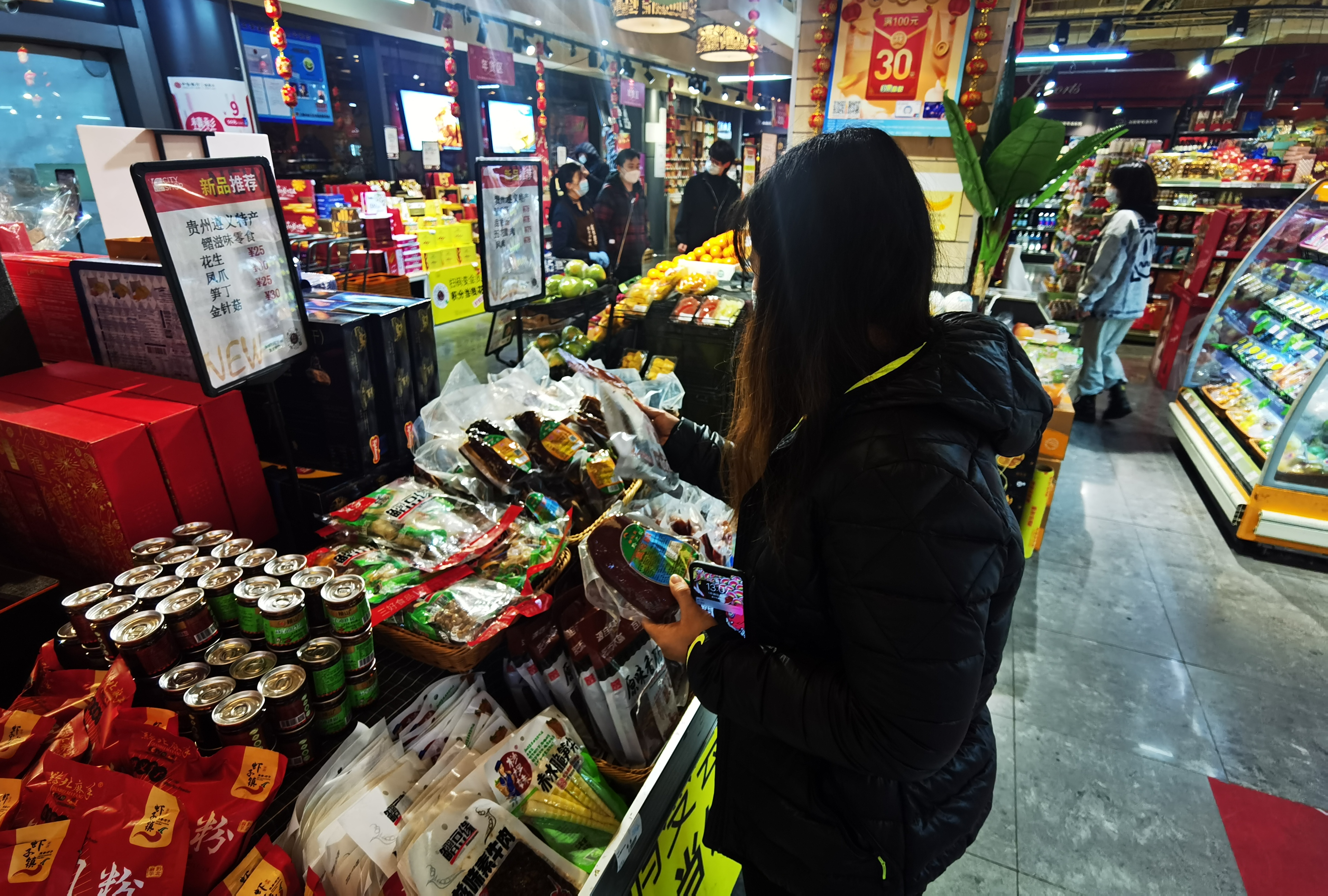 在上海一家超市,消费者正选购来自贵州的特色年节食品。新华社记者陈爱平 摄
