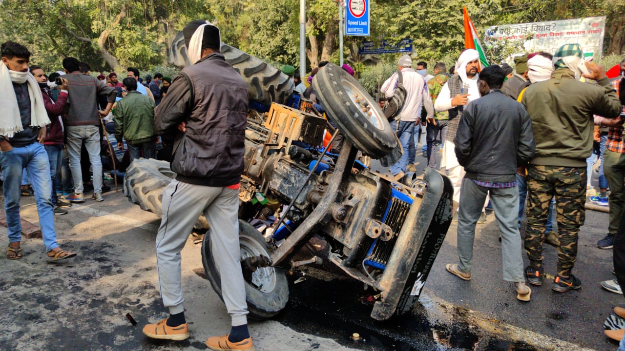 当地时间26日,新德里警方派出4万警力维持市区治安。但是当天下午游行开始后,拖拉机集会在行进了一段路程以后,农民们就改变了原有路线,他们冲破路障,和警察发生了激烈冲突。集会的农民冲到了新德里标志性建筑——红堡,并将农民工会的旗帜插在红堡广场前的旗杆上,农民在此地集结欢呼并与警察对峙。据《印度斯坦时报》报道,在与警方的冲突中,有一位农民身亡。