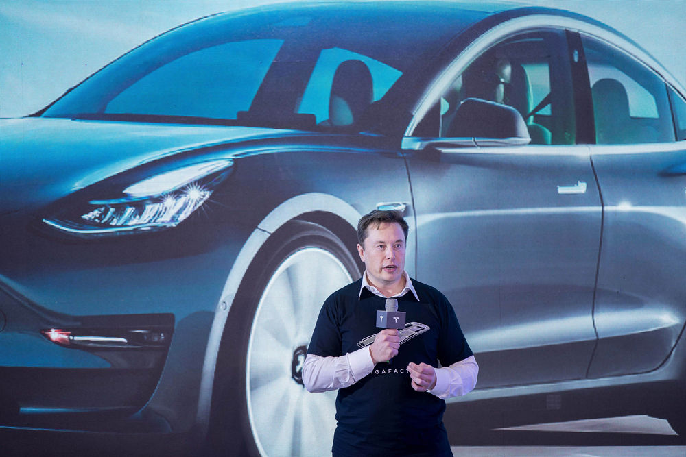 2020年1月7日,在特斯拉上海超级工厂,特斯拉首席执行官马斯克出席中国制造Model 3交付仪式。(新华社记者丁汀摄)