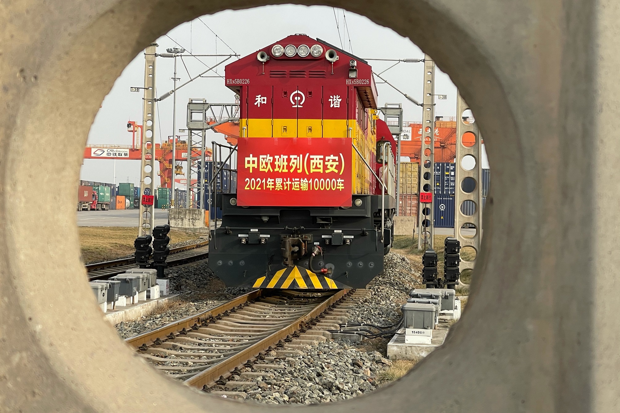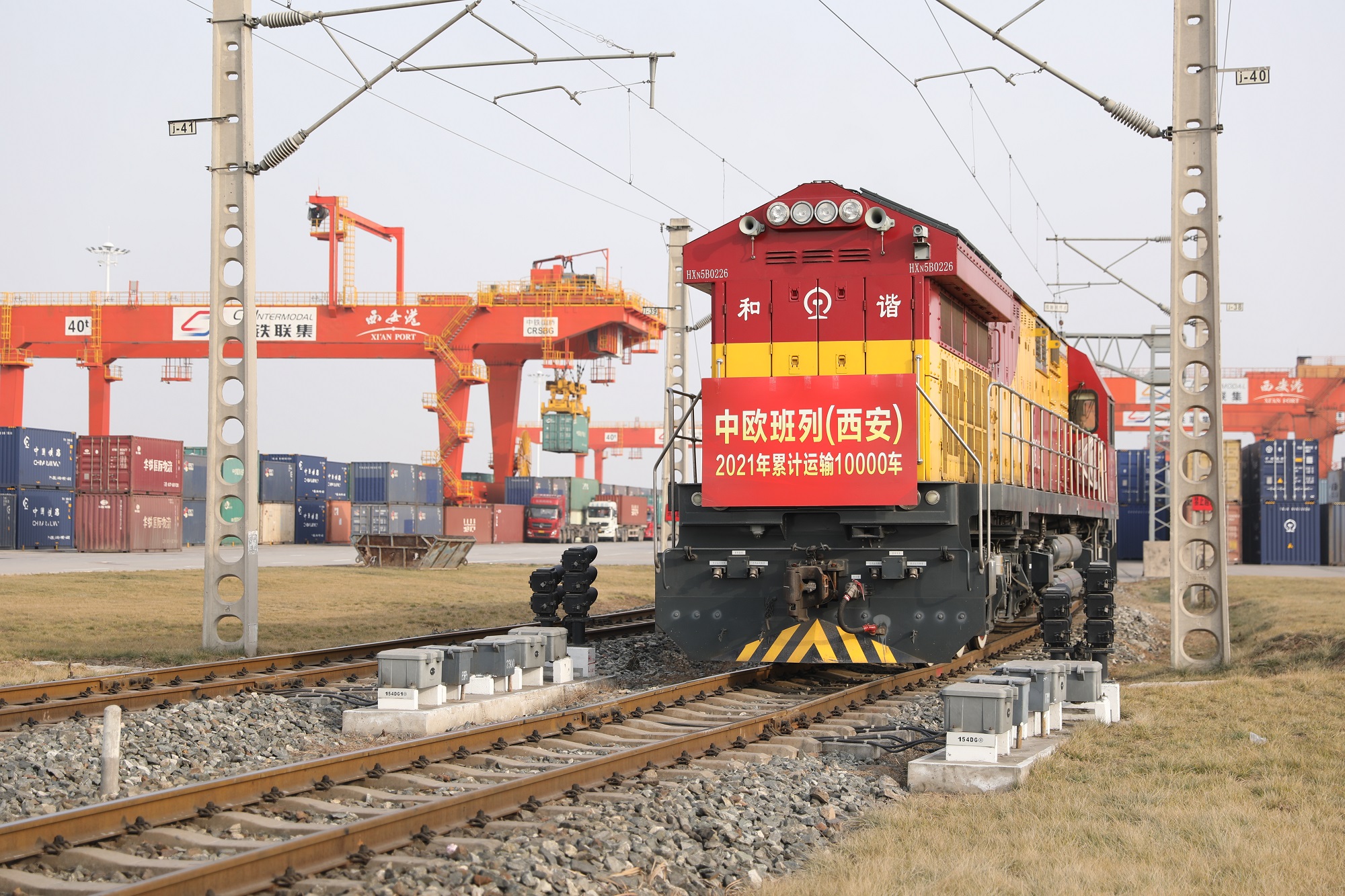 记者从中国铁路西安局集团有限公司获悉,1月26日,满载着保温杯、电熨斗、冰箱压缩机等50车货品的X8153次中欧班列(西安),从中国铁路西安局集团有限公司新筑车站驶出,开往德国曼海姆,这标志着2021年中欧班列(西安)运输车数突破10000车。