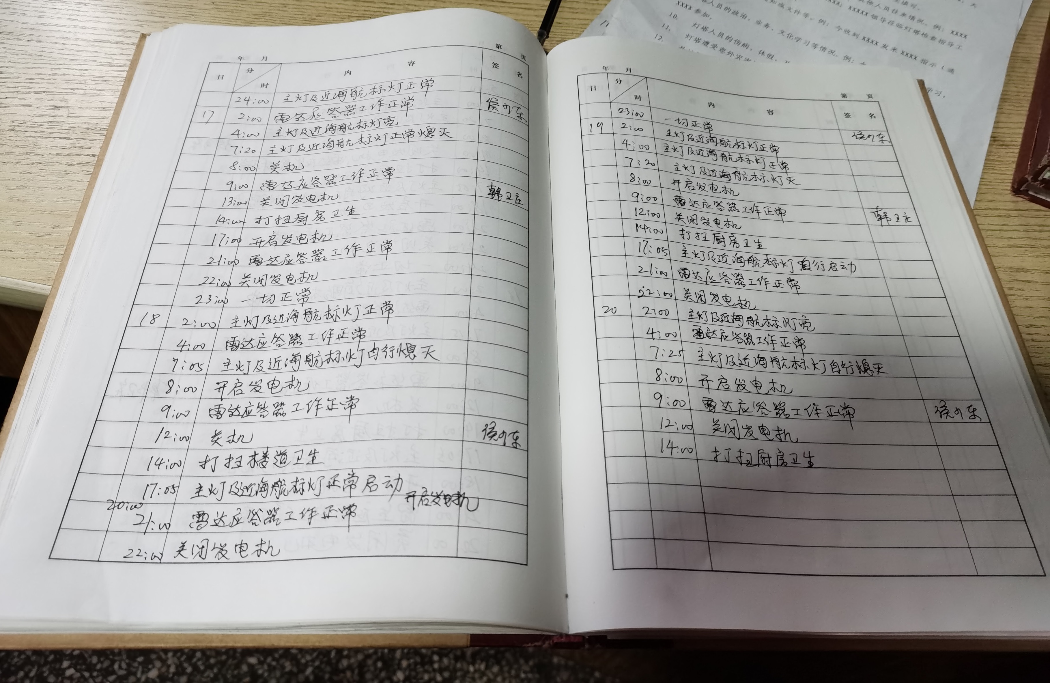 “17:05,主灯及近海航标灯正常启动”“2:00,主灯及近海航标灯正常”“7:20,主灯及近海航标灯熄灭”……翻开守塔人的工作日志,这些枯燥而又动人的简短记录映入眼帘。保障灯器正常工作是守塔人最重要的职责,到了晚间,他们就轮流值守,不眠不休地守护着来往船舶。