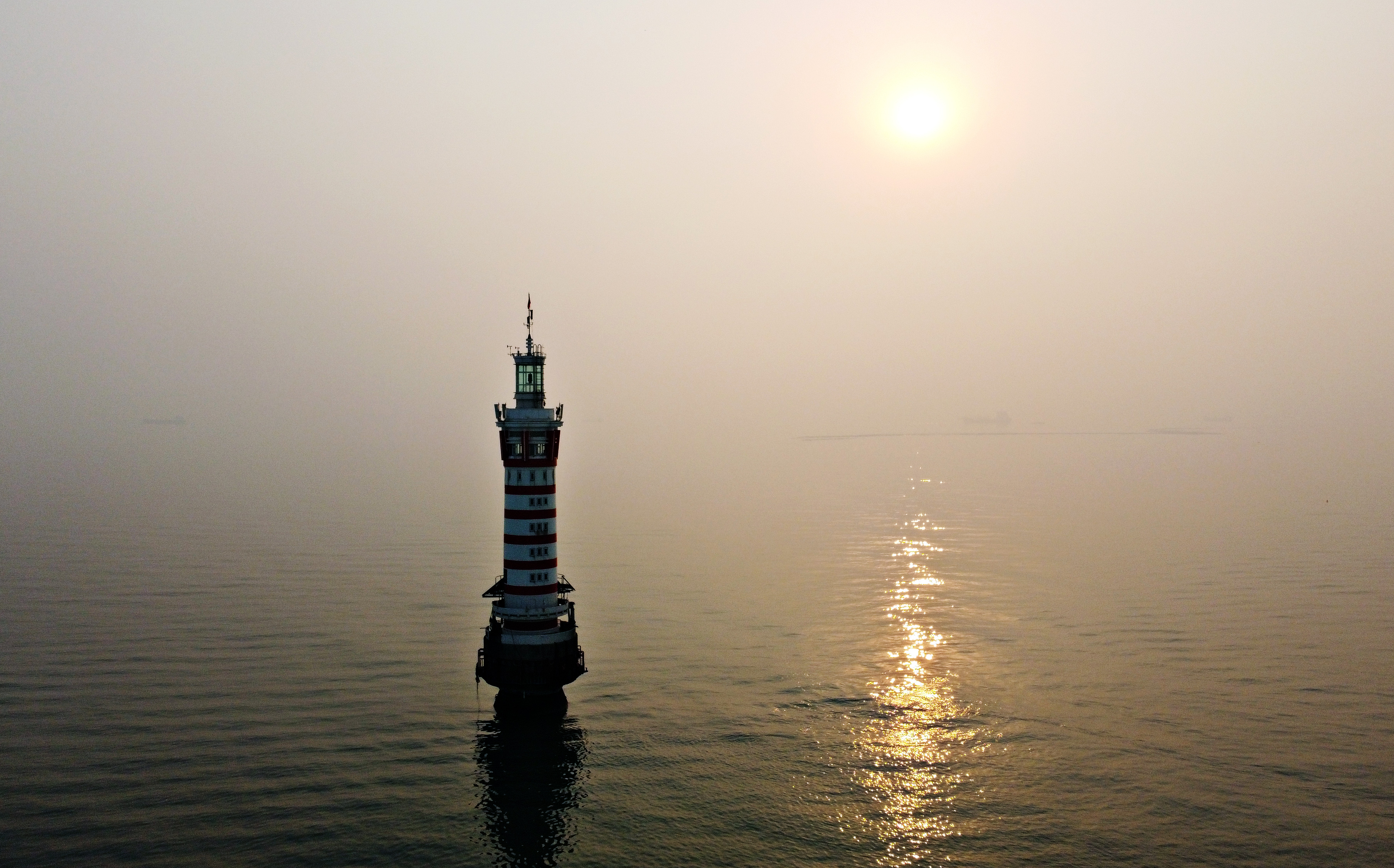 大沽灯塔水面塔高约38.3米,灯光射程约17海里,是国内目前仍有专人值守的海上灯塔,也是为船舶照亮航程的“信号灯”。