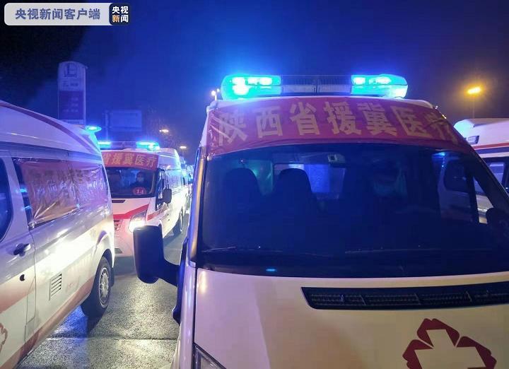 1月27日早上7点,在石家庄裕华高速口,陕西省援冀医疗队20辆负压救护车队,44名救护车队员,先行启程返回陕西。(总台央视记者 王帅南 王帅)
