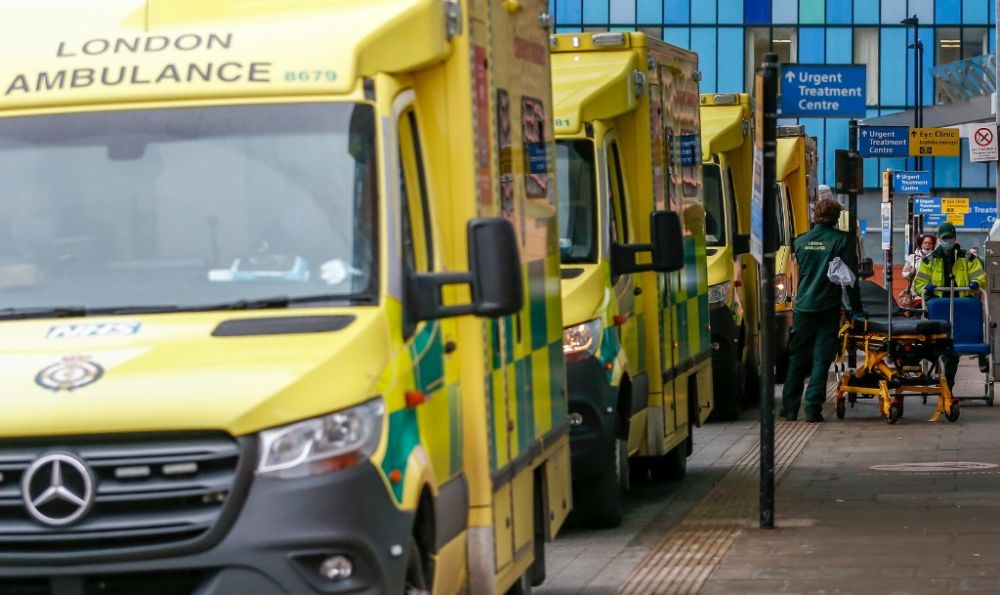 1月26日,在英国伦敦的皇家伦敦医院,医护人员在救护车旁工作。英国政府26日发布的数据显示,该国当天新增新冠死亡病例1631例,累计死亡病例100162例。数据还显示,英国当天新增确诊病例20089例,累计确诊病例3689746例。(新华社记者韩岩摄)