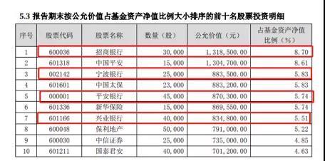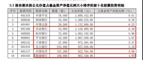 (小标题)有基金前十大重仓股均为银行