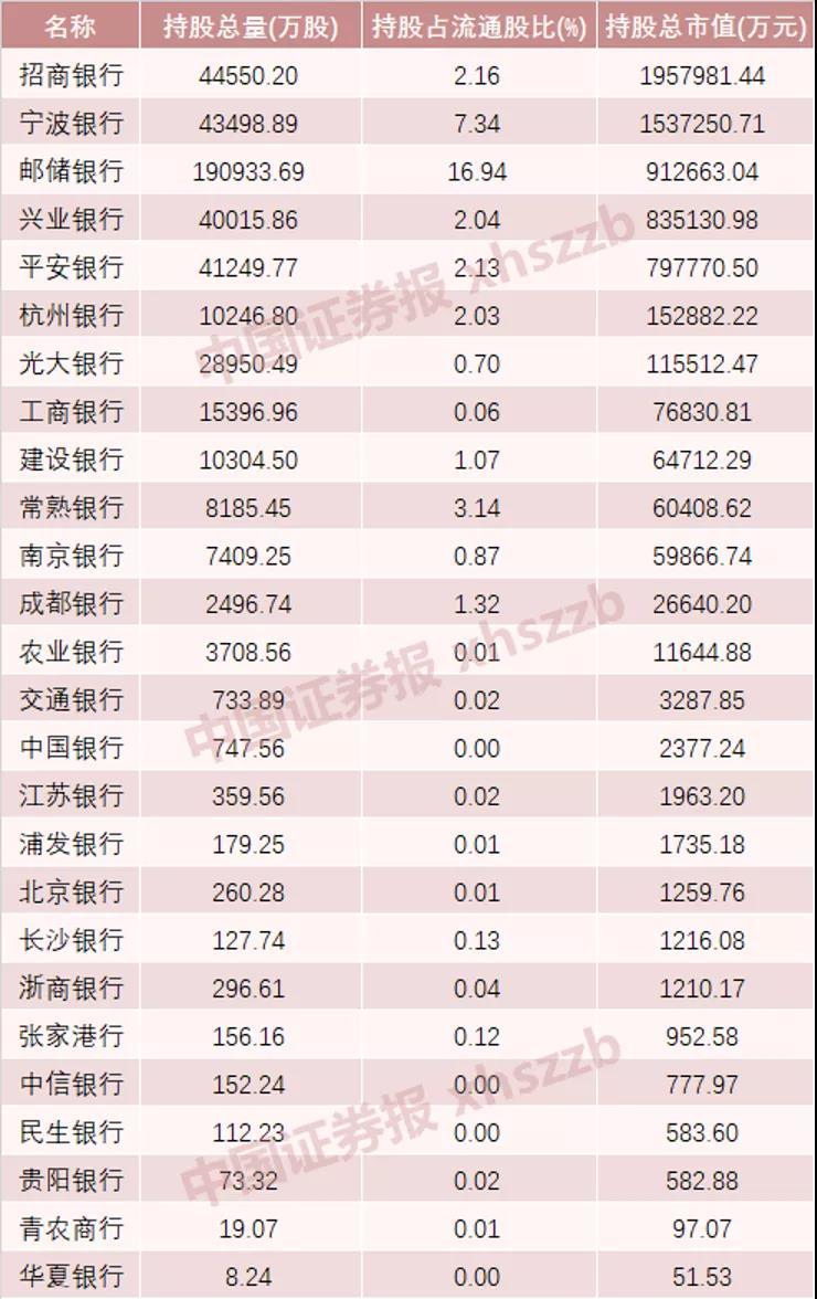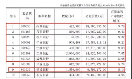 (图片标题)2020年四季度主动型权益基金重仓银行股