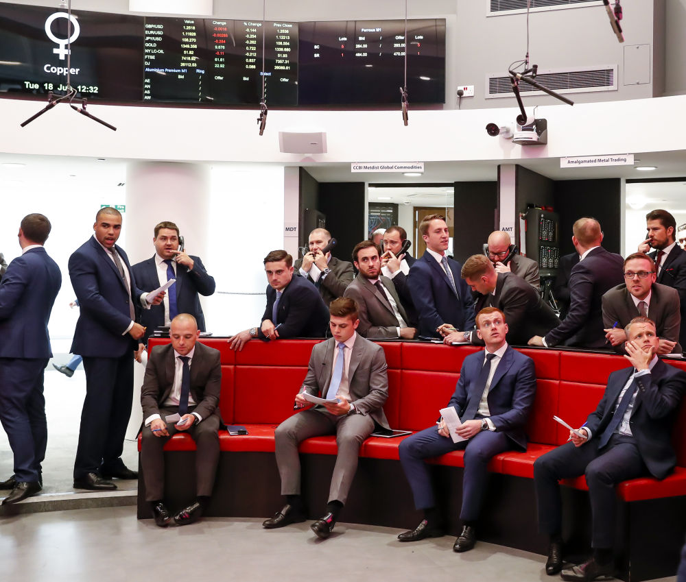 图为交易员在英国伦敦金属交易所内忙碌。 新华社记者韩岩 摄