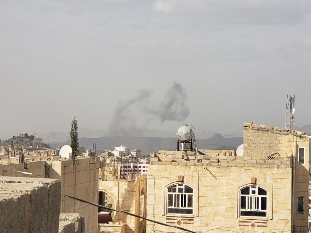2020年7月1月,遭空袭后,也门首都萨那硝烟弥漫。新华社发(穆罕默德摄)