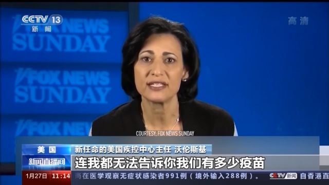 新任命的美国疾控中心主任 沃伦斯基:现在最大的问题之一就是,连我都无法告诉你我们有多少疫苗,我没法告诉你,我没法告诉各州州长,我也没法告诉州卫生官员。