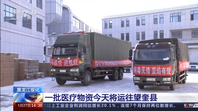27日,一批医疗物资将运往黑龙江绥化望奎县。有关物资转运的情况,我们来看总台央视记者从装车现场发回的报道。