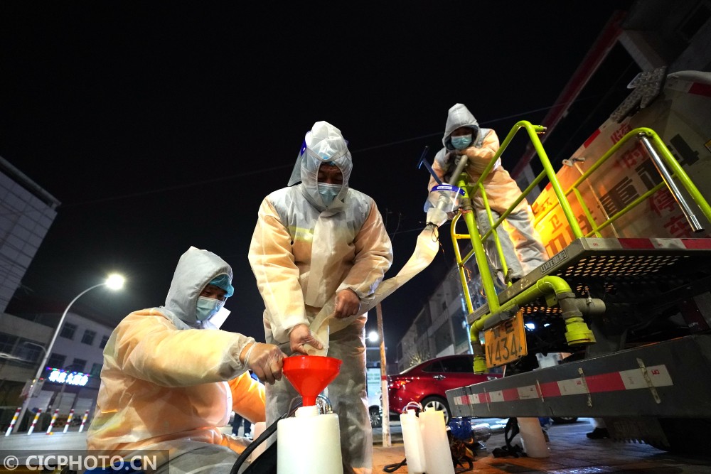↑2021年1月26日,河北省邢台市巨鹿县城管局环卫工作人员在做消毒前的准备工作。CICPHOTO/胡良川 摄