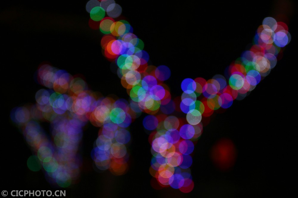 ↑2021年1月25日,河北省邢台市广宗县兴广路旁,霓虹灯闪烁。CICPHOTO/祝雪威 摄