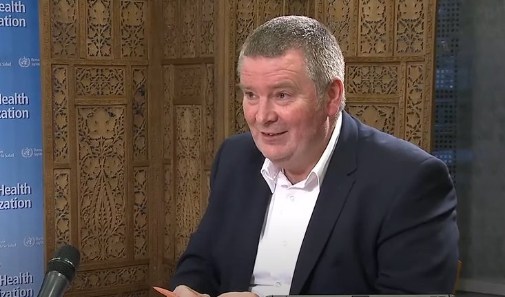 迈克尔·瑞安以流感举例,北半球和南半球每年两次更改流感疫苗成分,从而能够迅速提供合适的疫苗以应对主要的流感病毒株。(总台记者 朱赫)