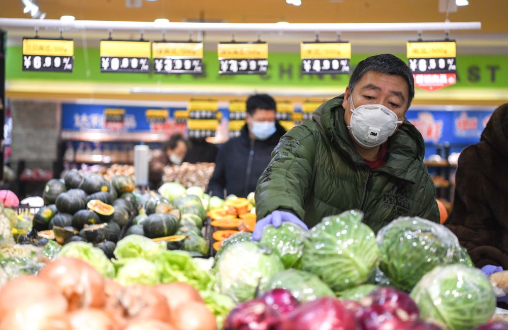 1月25日,消费者在哈尔滨市香坊区一家大型连锁超市购物。新冠肺炎疫情期间,黑龙江省全力抓好“菜篮子”产品生产,保障生产资料物流畅通,增强应急保供能力,确保肉蛋奶自给有余,蔬菜储备充足。新华社记者 王松 摄