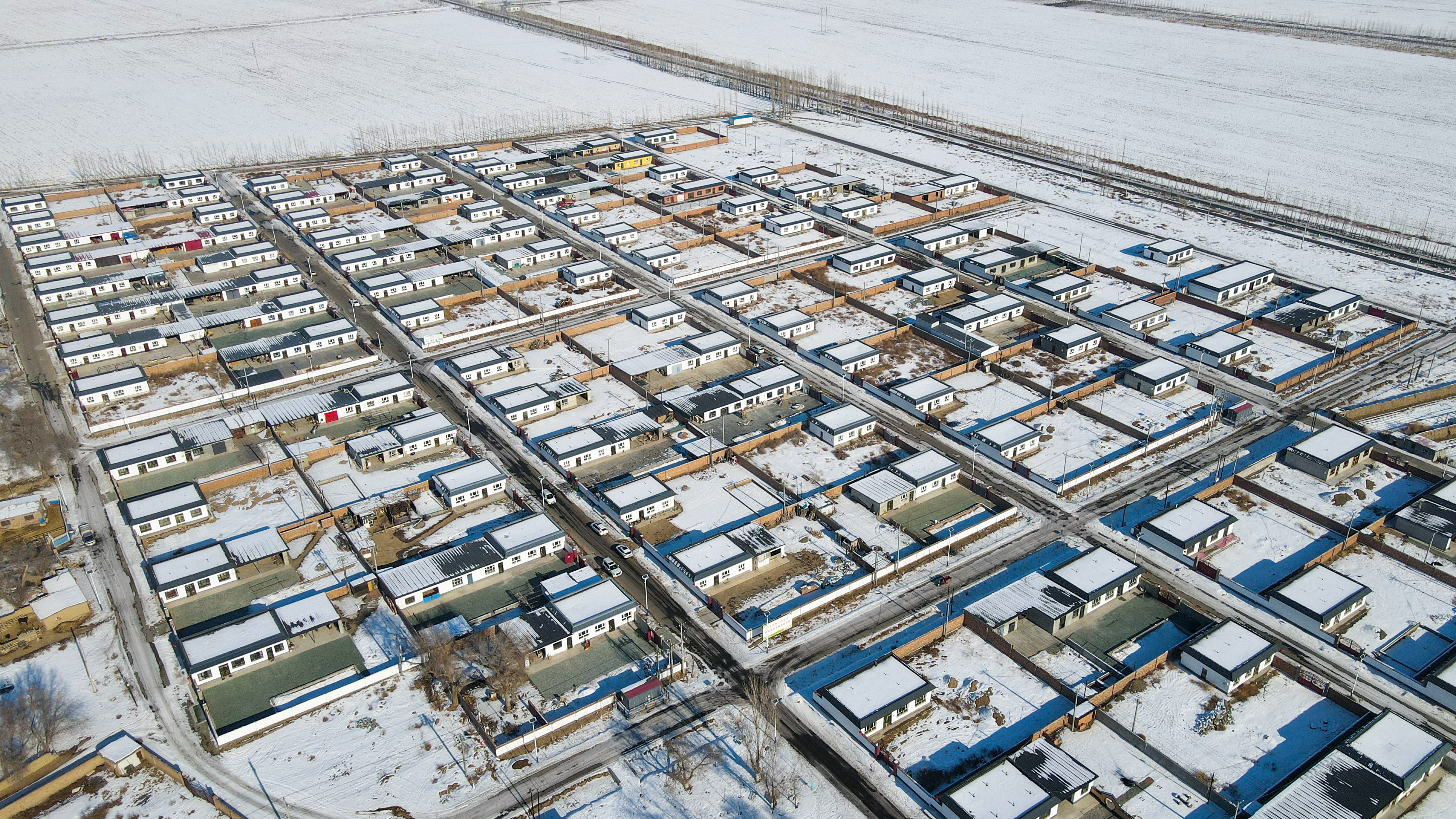 这是1月21日拍摄的吉木萨尔县头工街东村(无人机照片)。新华社记者丁磊 摄