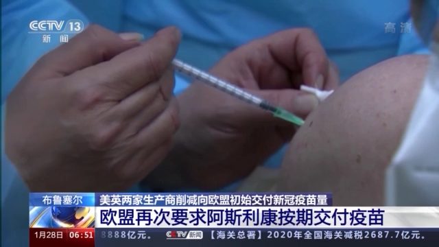 阿斯利康公司22日同样表示,位于欧洲的一处生产基地产能减少,将原定一季度向欧盟交付的大约8000万剂疫苗,缩减到大约3100万剂。26日,阿斯利康公司还为优先向英国供应疫苗的行为辩解称,该公司与英国政府签署的协议要比欧盟早三个月。