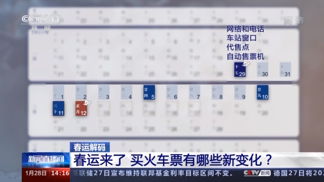 第一个就是1月29日,从这一天开始,才可以购买15天后,也就是大年初一的火车票,这区别于往常提前30天线上预售的规定。