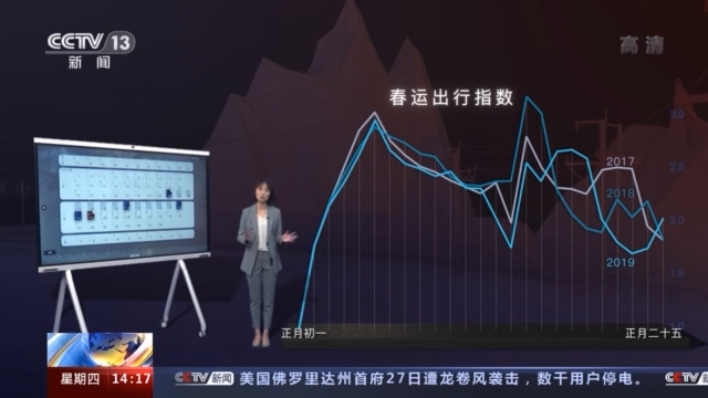 来看这张根据数据绘制的三条曲线图,它们分别代表2017年、2018年、2019年,春节后乘坐火车的人流情况,很明显,人数较多的出现在正月初六和正月十六前后。大家可以参考这三条曲线,合理安排购票时间,以免耽误行程。