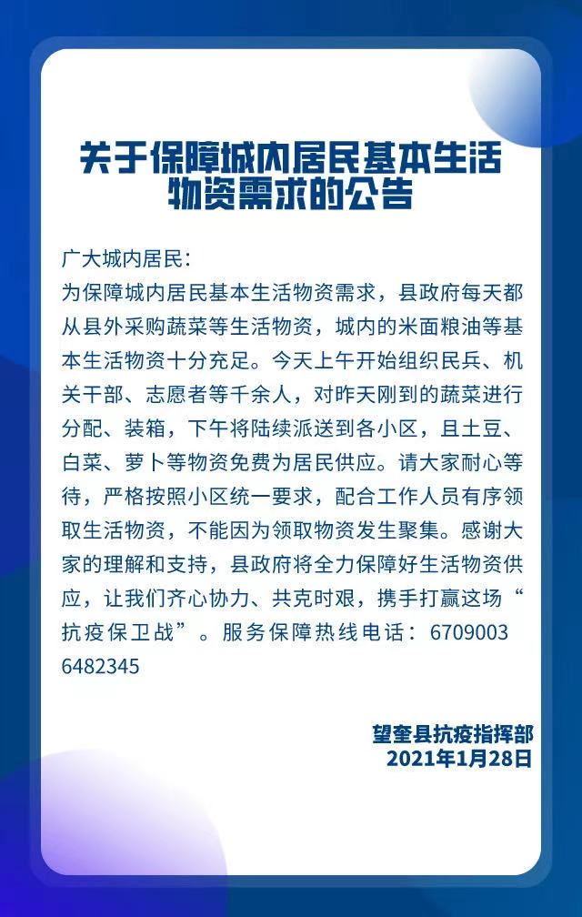 △望奎县抗疫指挥部发布关于保障物资需求的公告