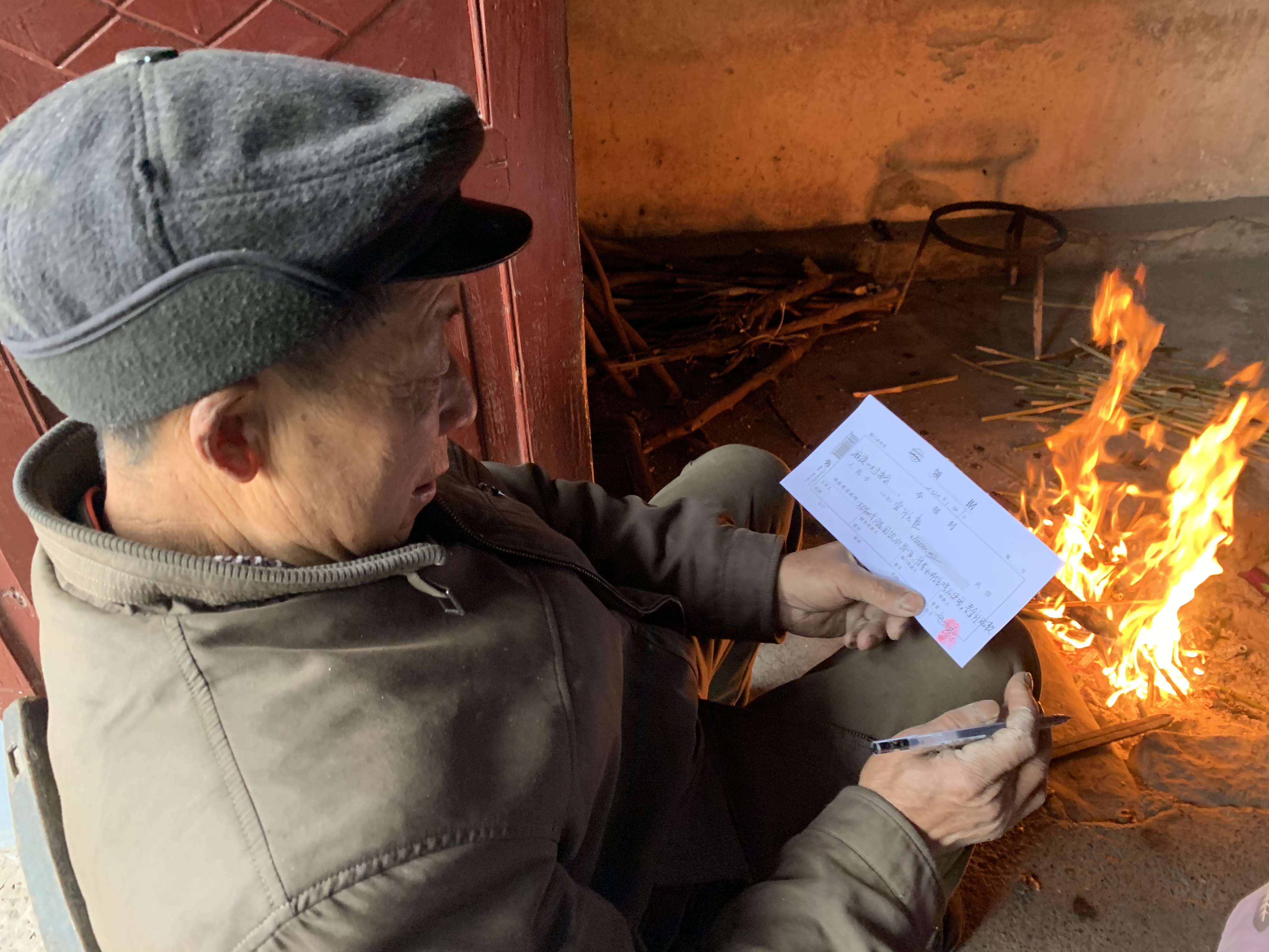 1月27日,湖南省湘西土家族苗族自治州泸溪县浦市镇麻溪口村村民杨家成收到村干部送来的1000元补助资金。因饮水困难,2020年杨家成对一口老水井进行了维修改造,申请到了村里的资金补贴。(新华社记者席敏摄)