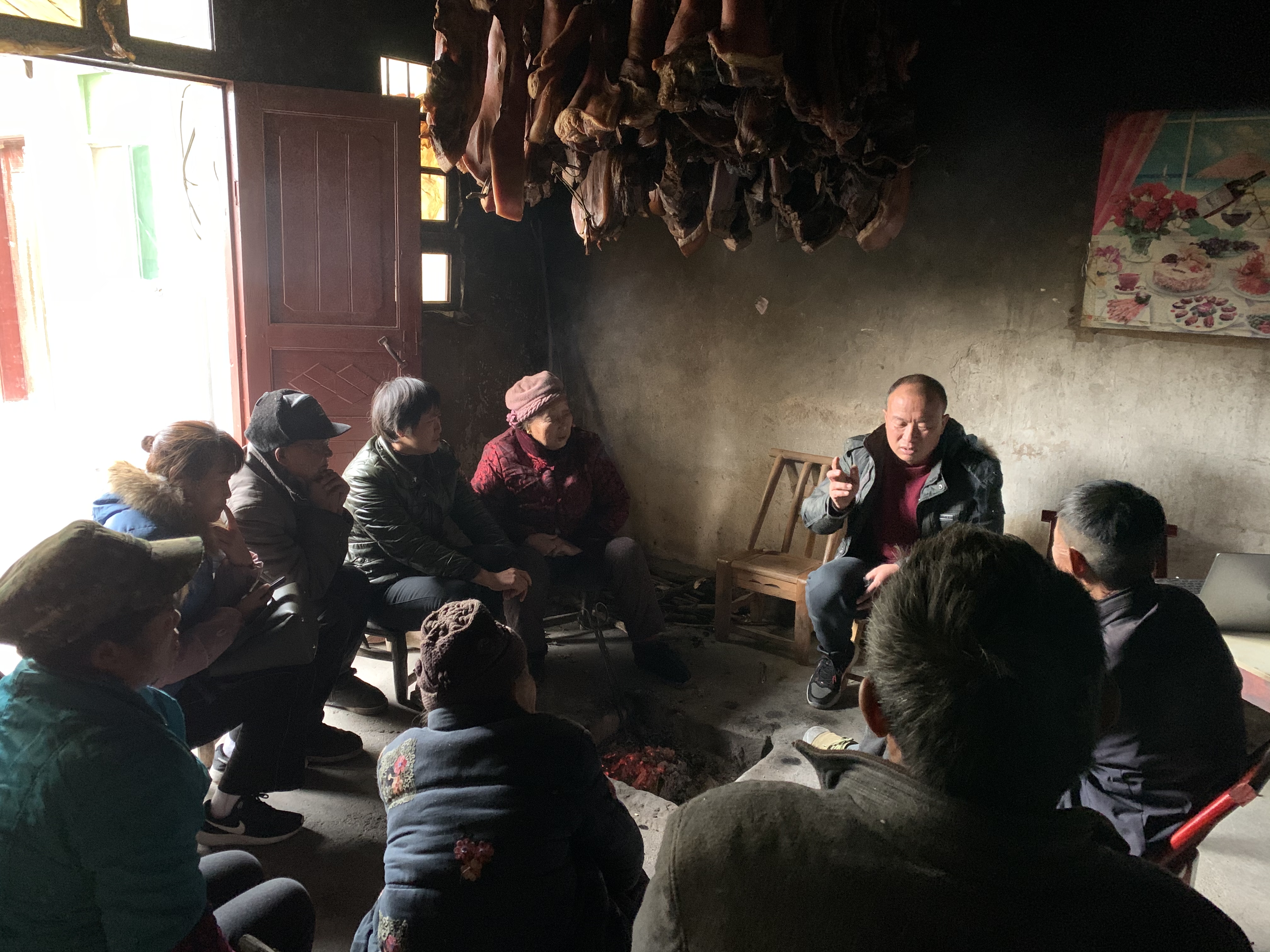 村里少见人来车往,但村民杨家成的家中却传出一片欢笑声。围坐在火塘边,村里的老党员们打开了话匣子,在村干部李高明带领下一起谋划今年的新打算。