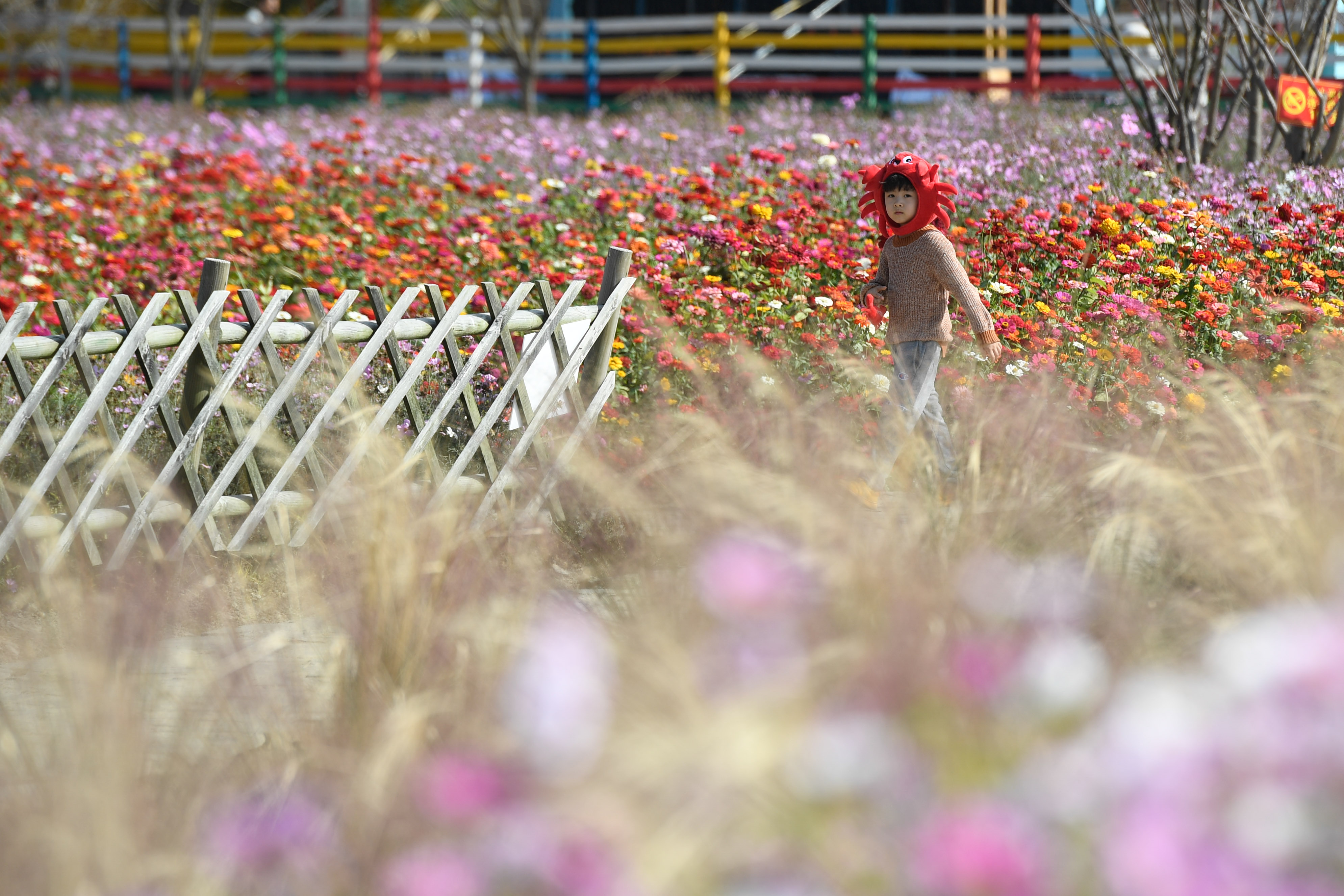 2020年11月5日,小朋友在浙江湖州市吴兴高新区杨溇村的花海游玩。新华社记者黄宗治 摄