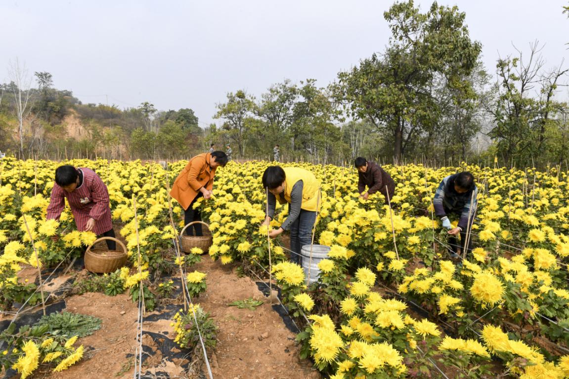 现在,朱家沟的村民们一年到头日子过得红红火火。冬天,大棚里的反季节蔬菜绿油油。到了菊花收获季节,漫山遍野黄灿灿,就像给朱家沟村涂上了一层金色,这个昔日山坳里的“穷窝窝”,变成了“金窝窝”。