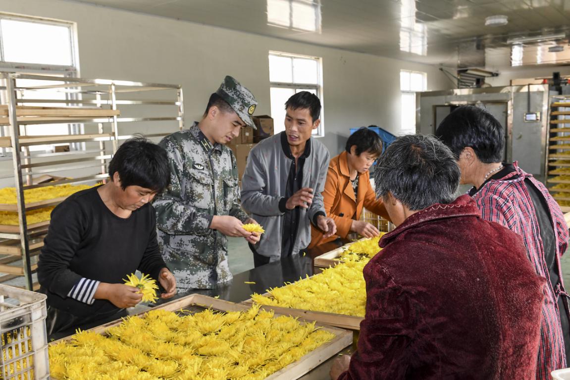 2019年,该旅把目光投向规模更大、效益更好的茶饮菊花种植。通过多次考察市场和反复研究论证,该旅先后投入数十万元帮助该村建成200余亩菊花种植基地,和当地政府一起投资引进茶菊烘干、杀青生产线。