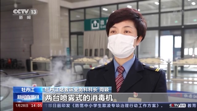 牡丹江站客运业务科科长 周颖:我们在进站扶梯处增设了两台喷雾式的消毒机,由原来的人工定时对扶梯消毒变成了现在的实时消杀。