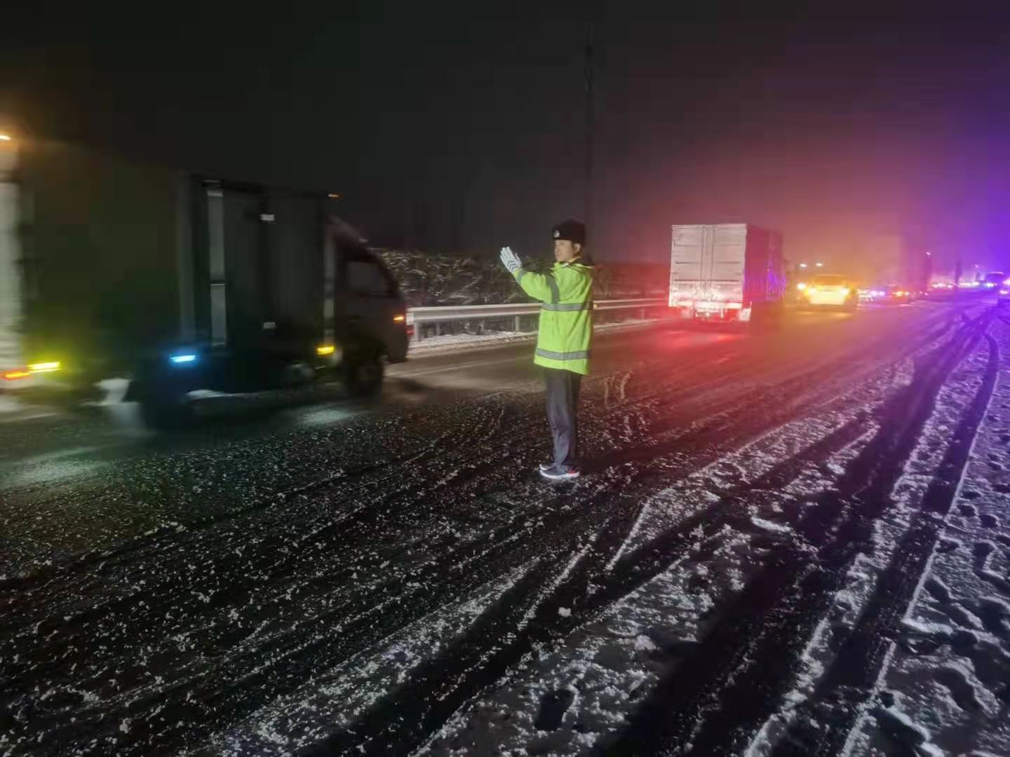 昨夜降雪开始,在鞍山、本溪、丹东、营口、盘锦等地的重要路段和节点,相关部门全力疏堵保畅,保障道路交通安全畅通。(总台央视记者 季熠非 韦昊岩)