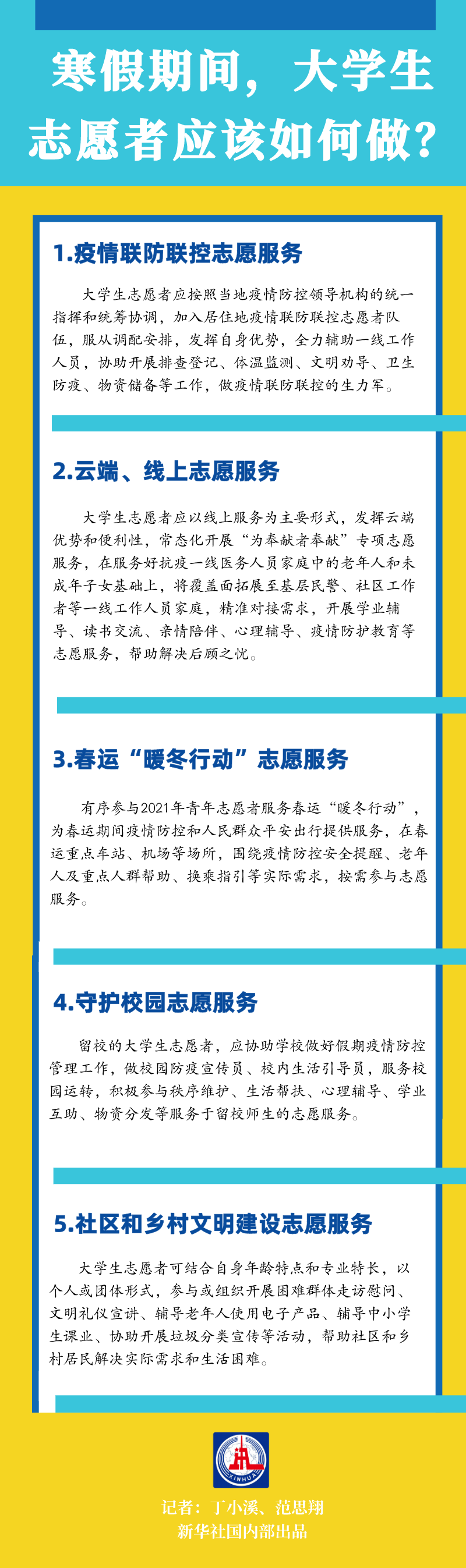 无论你已返回居住地,还是留在学校,都可参考下面这份工作提示,有序参与疫情防控等志愿服务,让这个寒假不虚度!