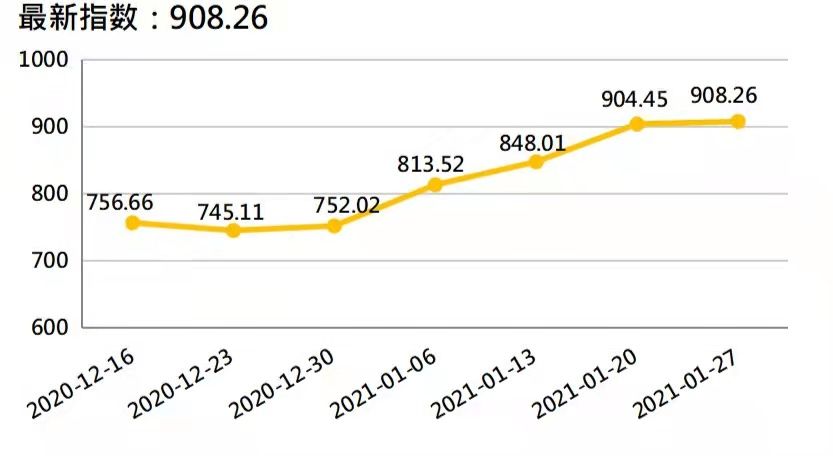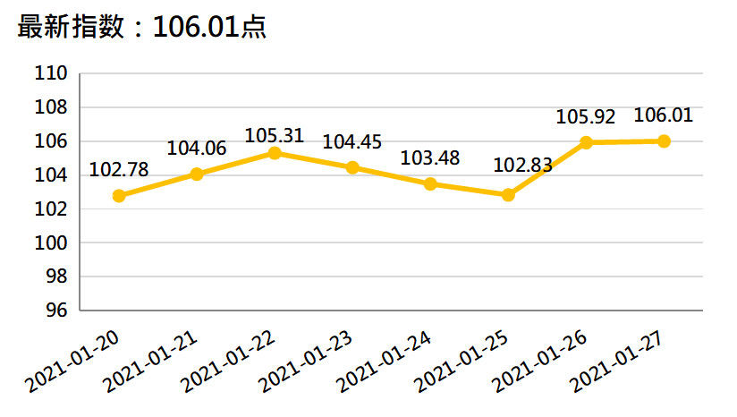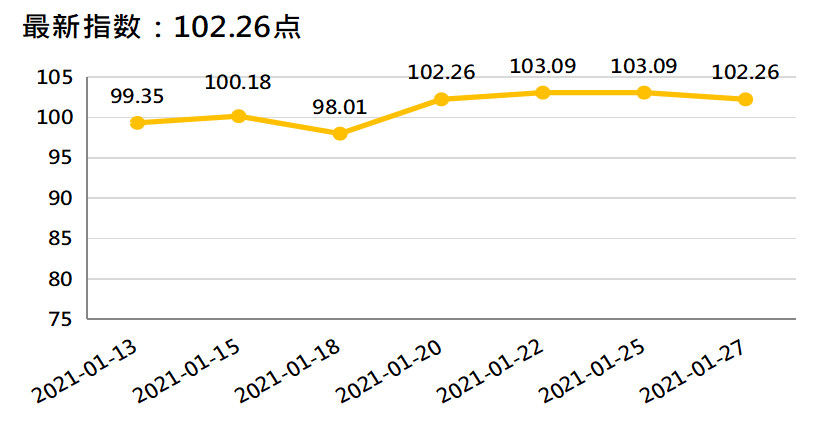 本监测期内(1月21日-27日),新华-香蕉销地批发价格指数、进口蕉价格指数较上期(1月14日-20日)上涨,皇帝蕉产地价格指数较上期显著下跌,新华-中国香蕉价格指数较上期持平。