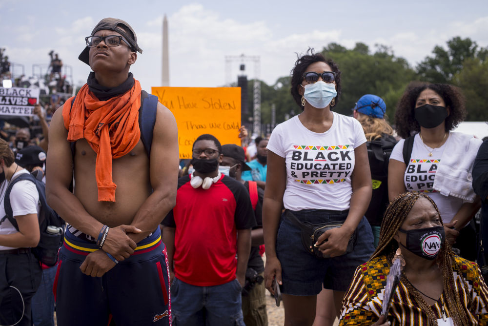 2020年8月28日,人们在华盛顿林肯纪念堂附近参加反种族歧视和暴力执法示威活动。(新华社发 阿兰摄)