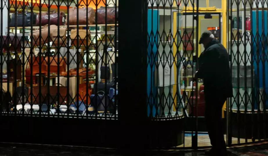 △受疫情影响,法国北部里尔的一名商店店主正在关闭他的店铺(图片来源:法国24电视台)