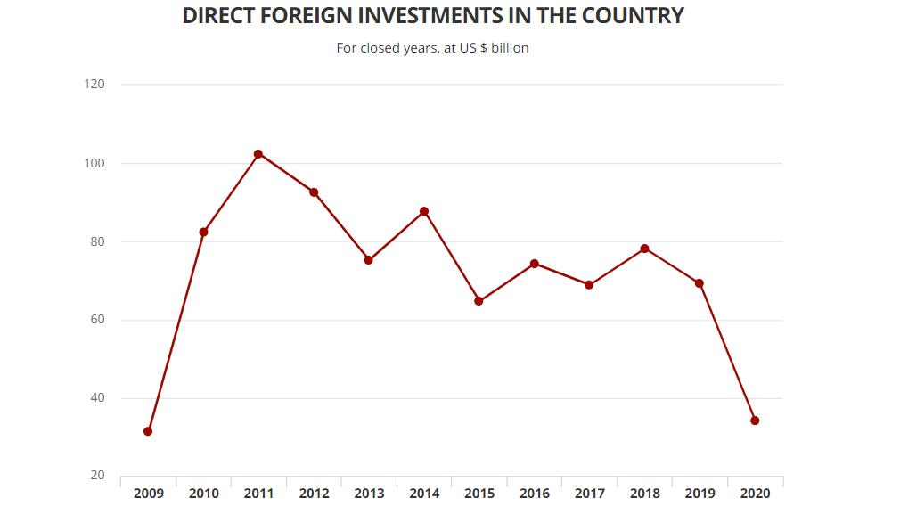 当地时间27日,巴西央行发布报告称,2020年在巴西的外国直接投资(FDI)总额为341.67亿美元,与2019年的691.74亿美元相比,下降了约50%,同时该数字也创下了2009年以来新低。巴西央行统计部门负责人费尔南多·罗查(Fernando Rocha)将外国直接投资的下降归咎于导致巴西经济衰退的新冠疫情。罗查在接受媒体采访时表示,一些投资“可能因巴西疫情而推迟或取消”。根据2020年12月份巴西央行的预估,随着经济前景改善,2021年巴西的外国直接投资将有望达到600亿美元。