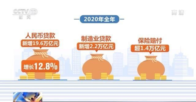 据统计,2020年全年我国人民币贷款新增19.6万亿元,增长12.8%。新增制造业贷款2.2万亿元,全年保险赔付超1.4万亿元,有力支持了国民经济的稳步复苏。
