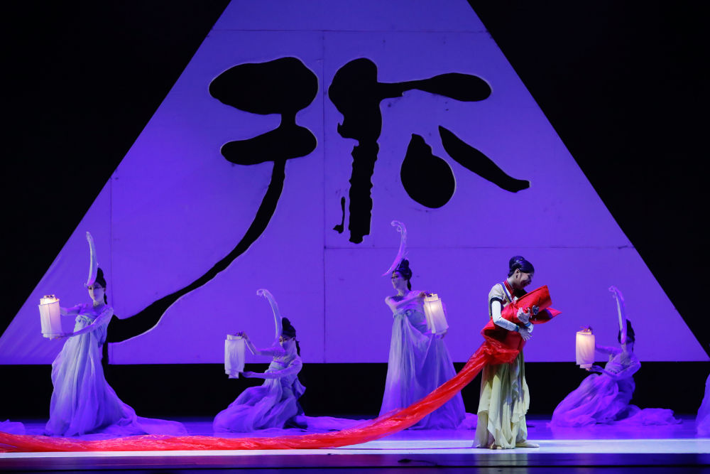 2019年5月22日晚,在韩国首尔,中国歌剧舞剧院演员在表演舞剧《赵氏孤儿》。(新华社记者王婧嫱摄)