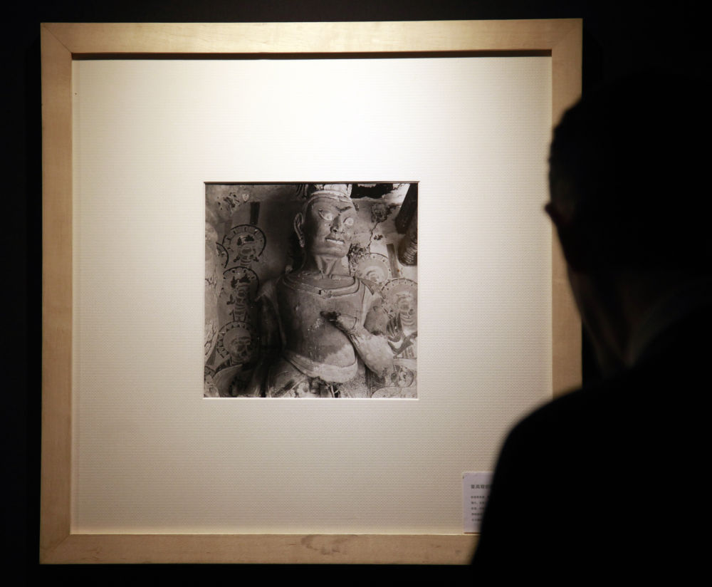2017年4月24日,在韩国首尔中国文化中心,参观者观看敦煌莫高窟的摄影作品。(新华社记者姚琪琳摄)