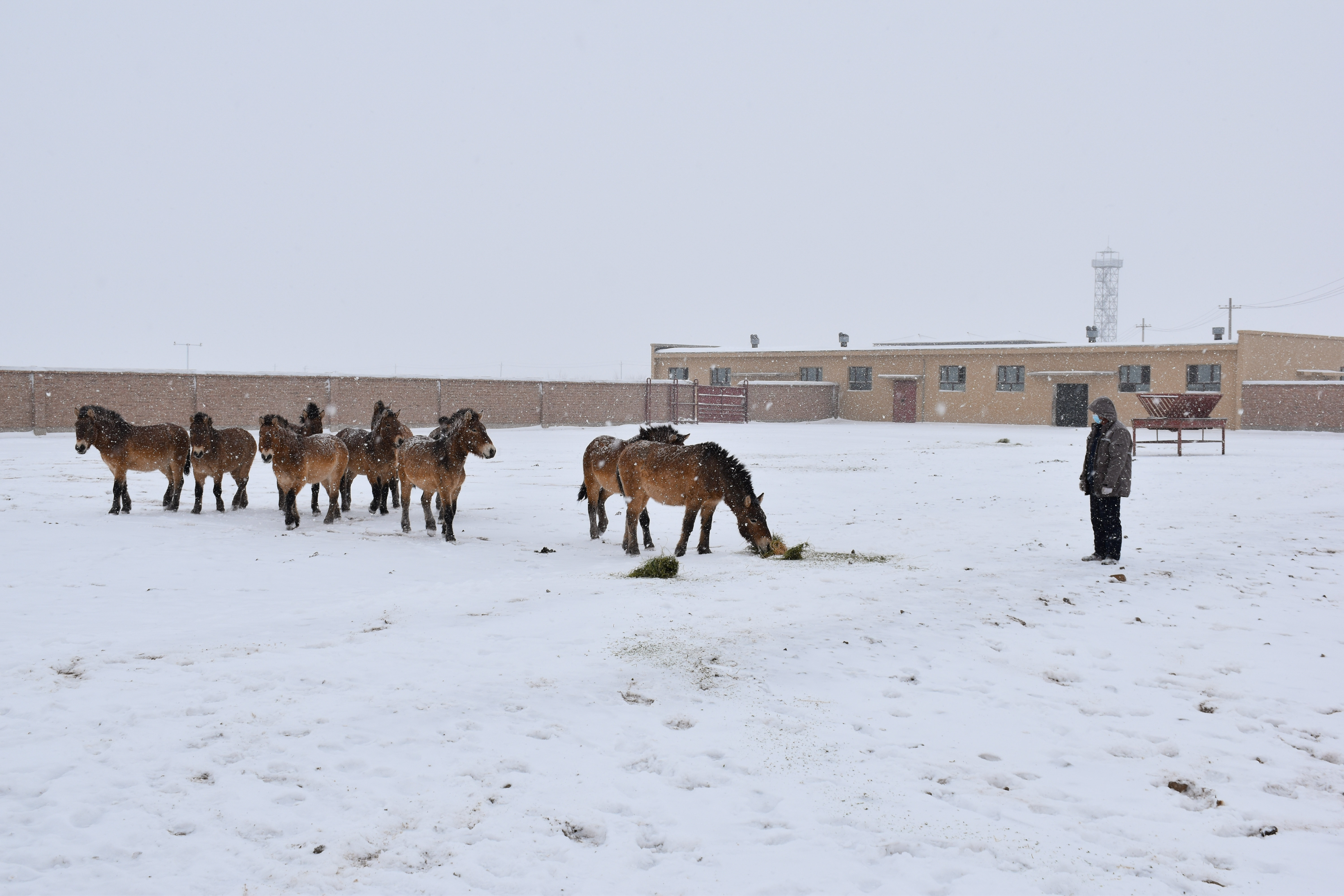 野马繁殖研究中心位于新疆吉木萨尔县,地处天山北坡,临近古尔班通古特沙漠,是普氏野马的原生地。研究中心主要负责野马重新引入、繁殖和野放研究,是世界野马数量最多的野马繁殖基地。