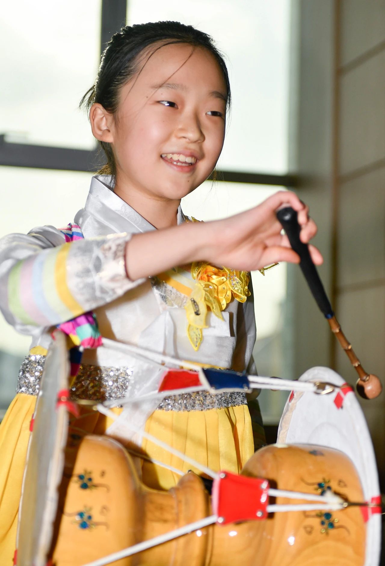 恩智就读于珲春市第四小学校五年级二班。在学校,恩智成绩优异,并加入了舞蹈社团。在练舞室,恩智穿着朝鲜族传统民族服饰,挎着长鼓,手拿鼓槌,向半月谈记者表演她刚学会的长鼓舞动作。