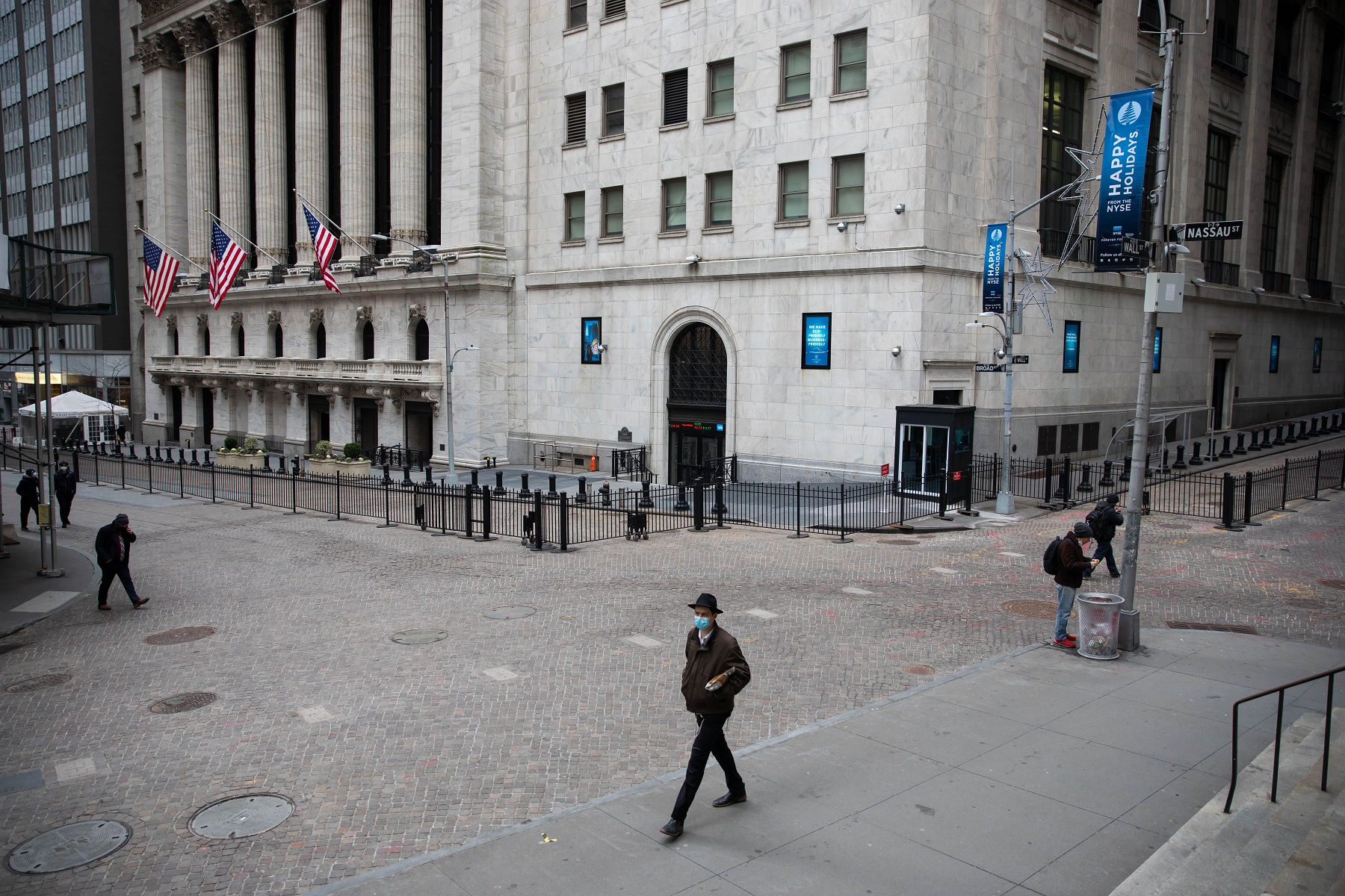 1月8日,行人从美国纽约证券交易所前走过。(新华社发,郭克摄)