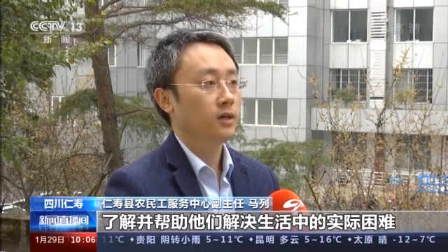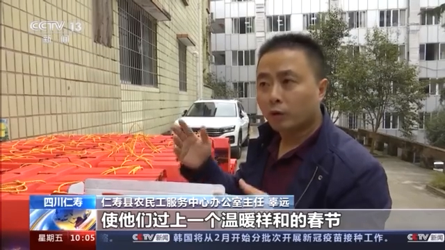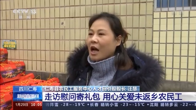 仁寿县农民工服务中心副主任 马列:我们同时也将对他们家里面的老人和小孩进行走访慰问,了解和帮助他们解决生活中的实际困难,目的就是要解决在外务工农民工的后顾之忧,让他们在外地能够过安心的年。