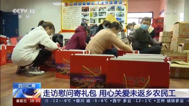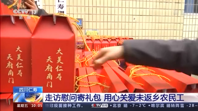四川仁寿县是外出务工大县,为防控疫情,很多在外务工的农民工都选择就地过年,为了让他们安心就地过年,仁寿县为部分在外务工的农民工送出年货大礼包。