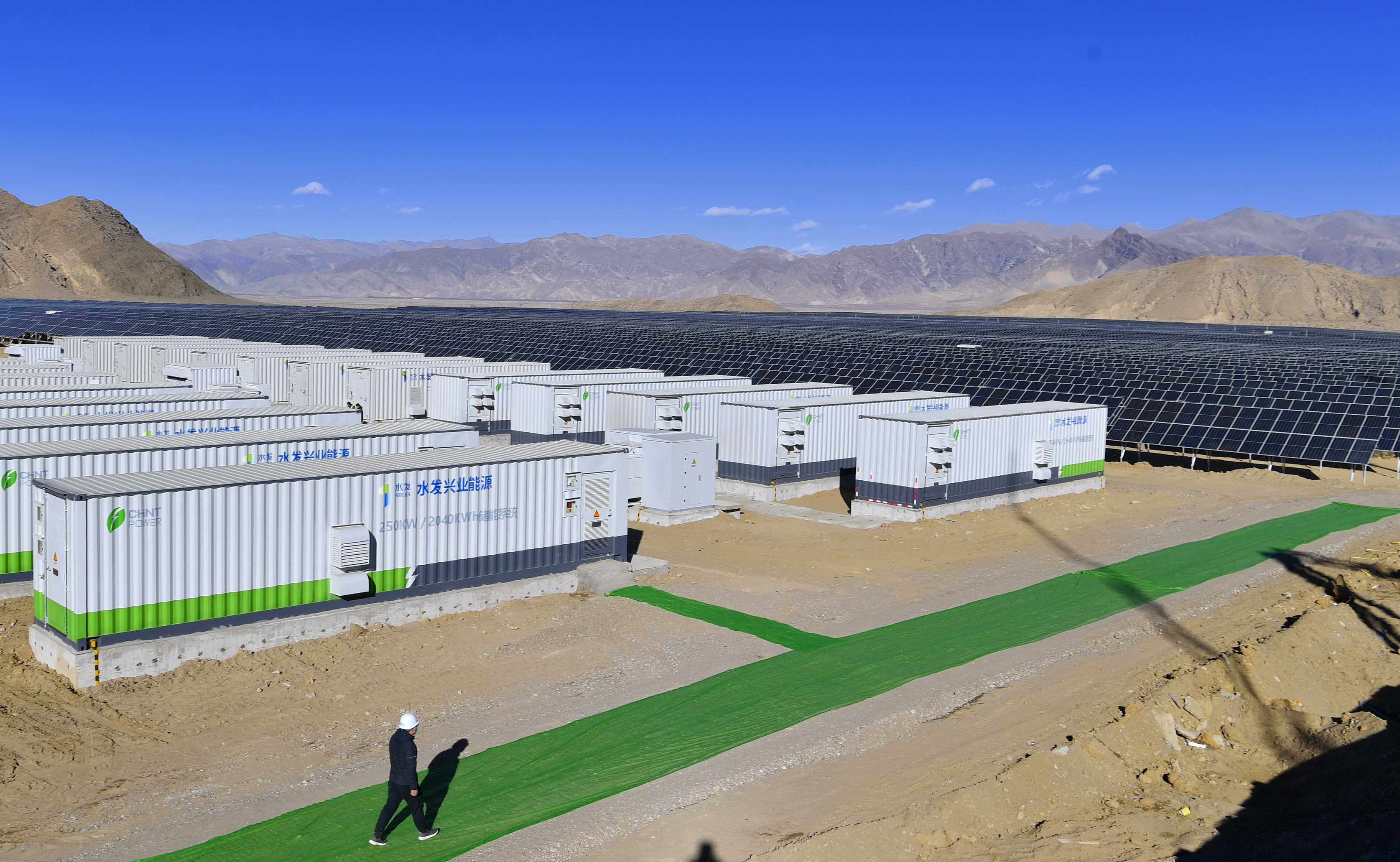 西藏日喀则市江当现代生态产业示范园内的50兆瓦光储电站储能系统和太阳能光伏组件(2020年12月24日摄)。新华社记者 张汝锋 摄
