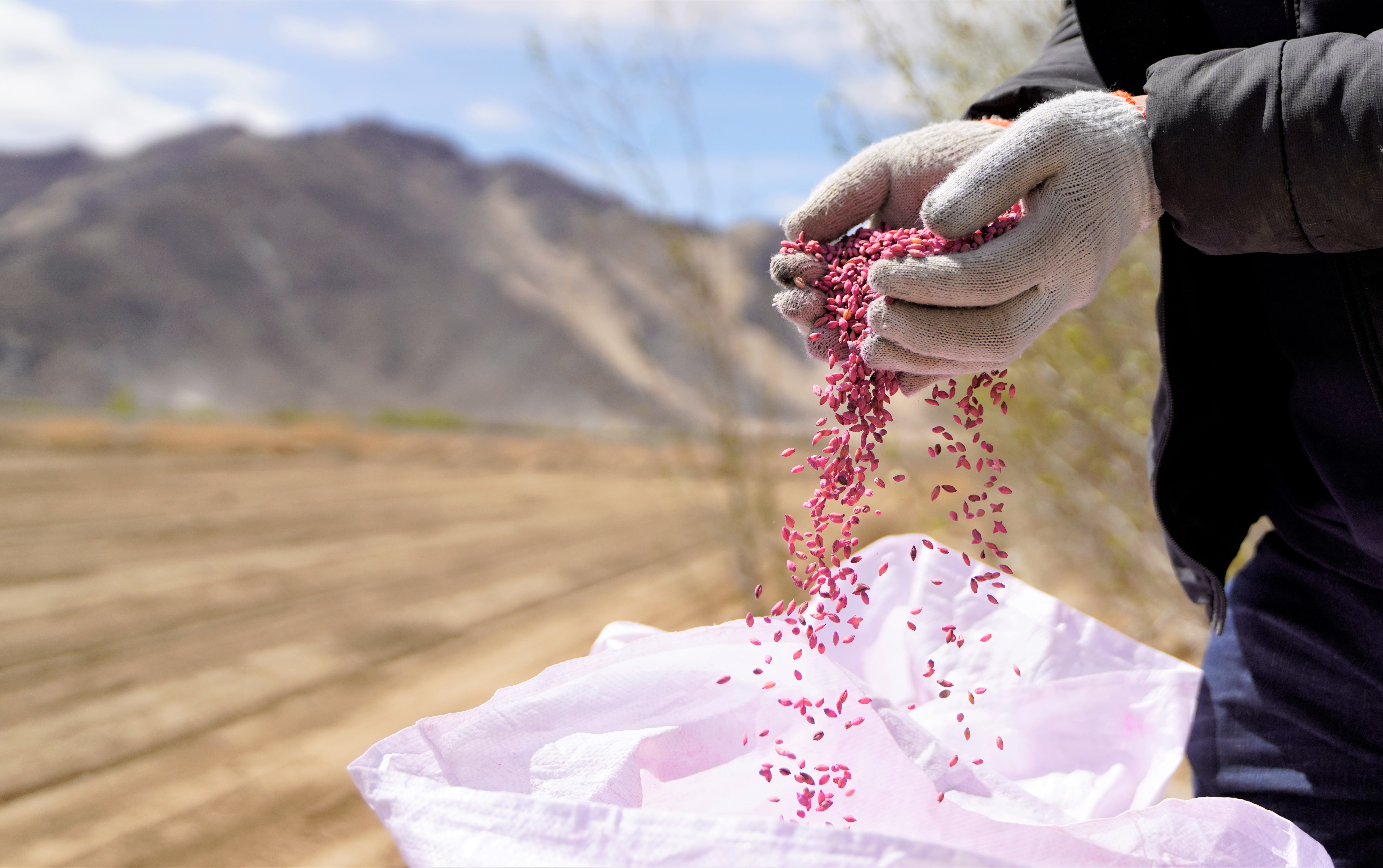 西藏拉萨市曲水县茶巴朗村农民播种的“藏青2000”种子(2020年4月22日摄)。新华社记者 普布扎西 摄