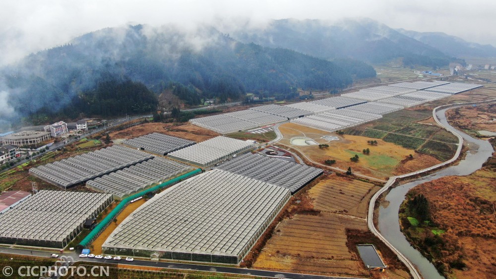 ↑这是2021年1月27日拍摄的贵州省锦屏县隆里乡盛丰农业生态园(无人机照片)。CICPHOTO/杨晓海 摄