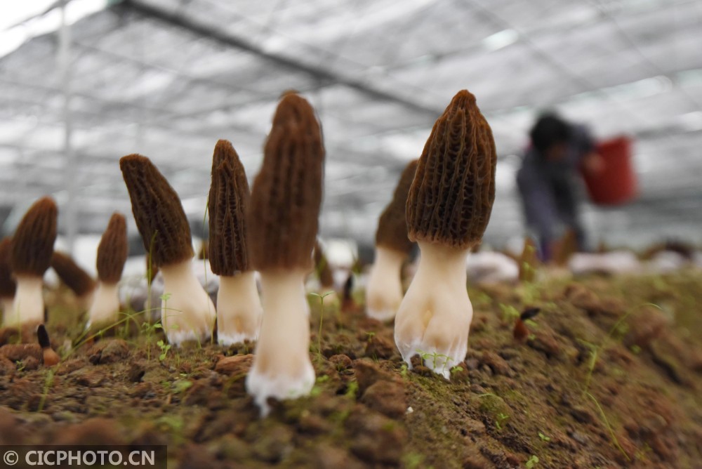 ↑2021年1月27日拍摄的贵州省锦屏县隆里乡盛丰农业生态园的羊肚菌。CICPHOTO/杨晓海 摄