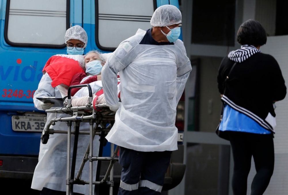 1月11日,在巴西首都巴西利亚一家医院,医护人员接收一名新冠患者入院治疗。(新华社发,卢西奥·塔沃拉摄)