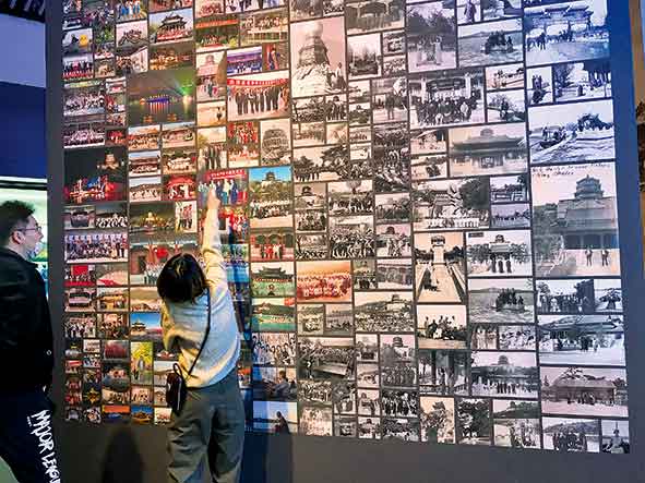 颐和园建园270周年文物特展在中国园林博物馆举行,图为游客在颐和园集体记忆墙中寻找自己的记忆。新华每日电讯记者闵捷摄