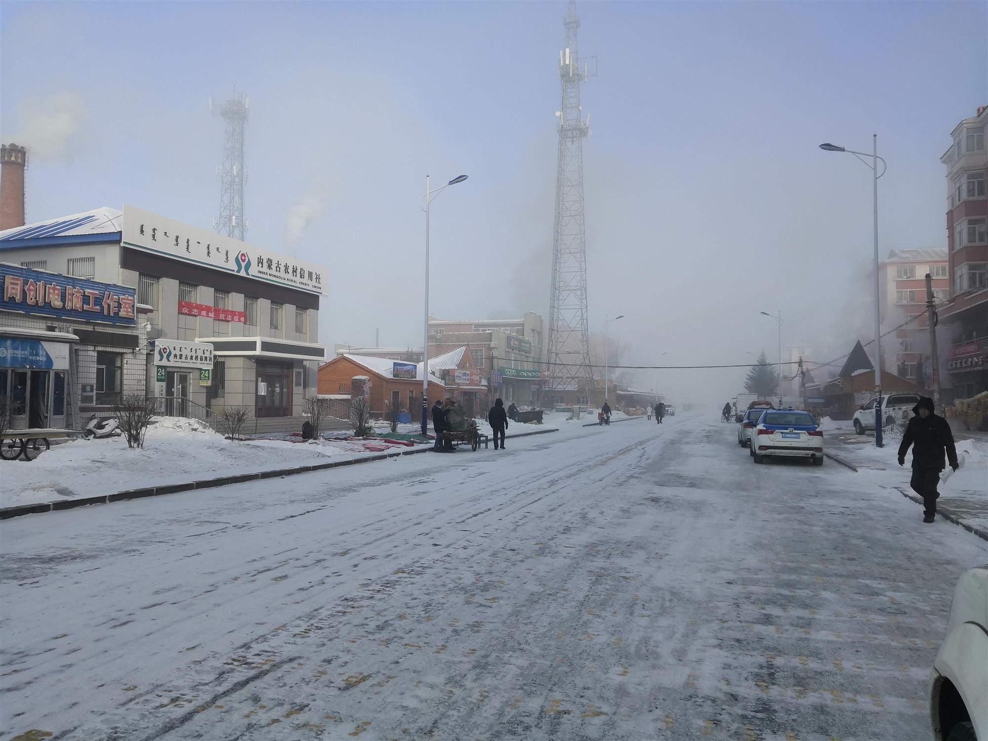 1月29日,图里河国家基准气候站雪面温度超过-50℃,超过出厂设置的-50~60℃的测量范围,工作人员已重新设置了参数。在图里河镇主街道上,居民寥寥无几。